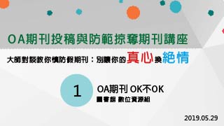 【2019學術講座】OA期刊投稿與防範掠奪期刊講座--「大師對談教你慎防假期刊:別讓你的真心換絕情」Part1